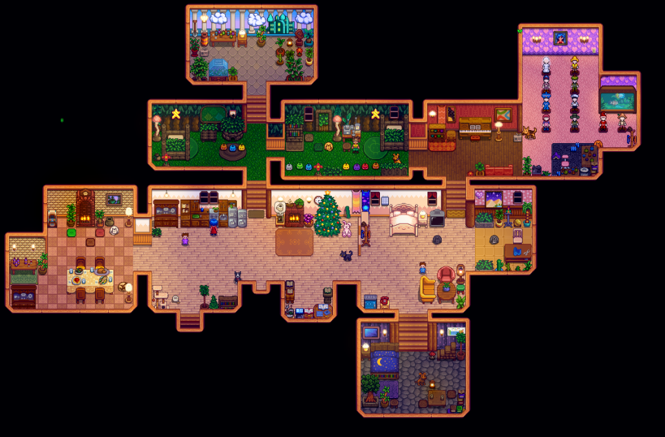 마을의 여러 NPC와 교류하고 결혼하고 심지어 아이도 키울 수 있는