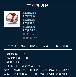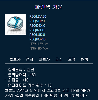 보상은 위에서 말씀드린 것처럼 가운과 경험치 5,000 그리고 10,000메소 입니다.